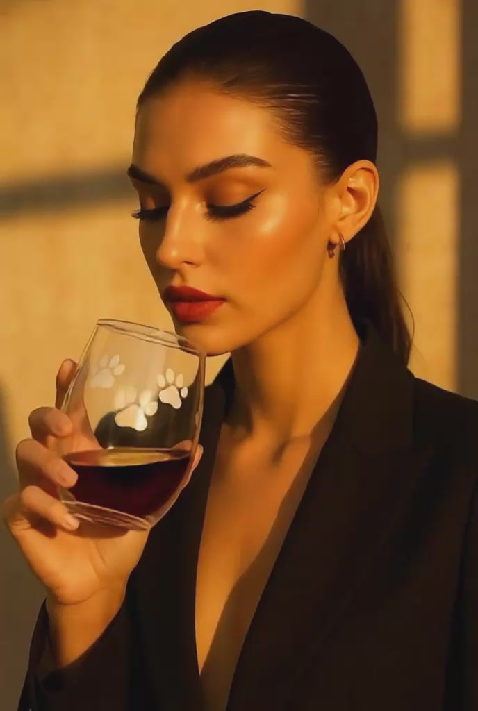 Sip in style with this elegant stemless wine glass featuring a minimalist gold paw print design. Crafted for dog lovers who appreciate clean aesthetics and modern luxury, this 15-oz glass is perfect for wine nights, gifting, or everyday use. (Priced to purchase four wine glasses for a set) (This product also pairs well with the paw print coaster, sold separately.)